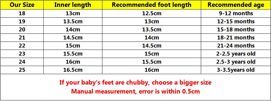 Then, use the brand’s size chart (available on sites like BabySockShoe.com) to determine the correct shoe size.